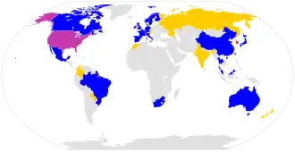 | America (11) | Europe (27) | Oceania (3) | Asia (16) | Africa (3) |