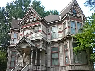 Gov. Lloyd Crow Stark House and Carriage House, also known as the Stark Mansion, is a historic home located at Louisiana, Pike County, Missouri. It was built in 1891, and is a two-story, Stick / Eastlake movement style brick mansion. It features three two-story bays on the primary facade, and centered, one-story bays on the side elevations, with gable roofs, fishscale shingles, and a decorative front porch. Also on the property is a contributing carriage house. This was the home of Missouri Governor Lloyd Crow Stark from 1915 to 1940.[2]: 5