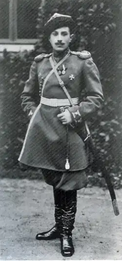 Grand Duke Sergei, who served as Governor General of Moscow, was a polarizing figure. Targeted by the SR Combat Organization, he was assassinated by a terrorist bomb at the Kremlin in February 1905.[11] The bomber had refrained from an earlier attack because he saw that Grand Duchess Elisabeth, 15-year-old Maria, and her younger brother Dmitri were in the carriage, and he did not want to kill women and children.[14] After the assassination of their uncle, both children were emotionally distraught, particularly Dmitri. Grand Duke Paul claimed the custody of his children, but the tsar made Elisabeth their guardian.[15] Grand Duke Paul was allowed to visit them, but not to return to Russia permanently. After her husband's assassination, Grand Duchess Elisabeth Feodorovna regretted treating the children poorly, and she became closer to them.