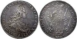 Cosimo frequently paid the Holy Roman Emperor, his feudal overlord, high dues.[40] He sent munitions to the Emperor during the Battle of Vienna. Tuscany was neutral during the War of the Spanish Succession, partly due to Tuscany's ramshackle military; a 1718 military review revealed that the army numbered less than 3,000 men, many of whom were infirm and elderly.[41] Meanwhile, the state's capital, Florence, had become full of beggars.[42] Europe heard of the perils of Tuscany, and Joseph I, Holy Roman Emperor asserted a remote claim to the grand duchy (through some Medici descent), but died before he could press the matter. The Treaty of the Hague reconfirmed the statuses of Tuscany and Parma-Piacenza as imperial fiefs.[43]