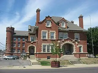 Grant County Jail and Sheriff's Residence is a historic county jail and residence located at 215 East 3rd Street in Marion, Grant County, Indiana, United States. It was designed by Richards, McCarty & Bulford and built in 1904. It consists of two distinct units that are constructed of red pressed brick with limestone detailing. The residence is in the Queen Anne style with English Tudor details. It sits on a raised basement and has a bell-cast roof.[2]: 2–3 It has been converted into apartments.