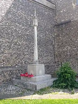 The Great Missenden War Memorial is located at the Church of St Peter and St Paul in the village of Great Missenden in Buckinghamshire. The memorial marks the deaths of local individuals who died fighting in World War I and World War II. It was dedicated on 8 May 1920 by the Bishop of Buckingham, Edward Shaw. The memorial is a tall thin stone pillar cross, with a two step base.[1]
