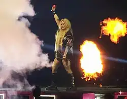 During 2022 and 2023, Lavigne embarked on her Love Sux Tour, promoting her seventh studio album Love Sux (2022). This tour spanned across Asia, Europe, North America and South America.[1] At the end of 2023, Lavigne revealed a series of European festival dates, accompanied by select stand-alone concerts including performances in Pula, Croatia and Cardiff, Wales.[2] In January 2024, she announced a lineup of tour dates across the United States and Canada, officially naming the tour the Greatest Hits Tour.[3][4]