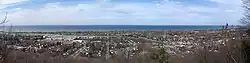 Canada's first Chautauqua-like organization (a Methodist camp) was established in 1859 in Grimsby Park on land donated by J.B. Bowslaugh; colourful cottages were later built, and some visitors spent entire summers in the area. Two hotels and a temple were also built. Over 50,000 visited in 1884, but by 1900, interest had declined. By 1909, the Grimsby Park Company was bankrupt, and the property was sold for use as an amusement park. The temple and hotels were destroyed in the 1920s. In 1910, the amusement park's first owner, Harry Wylie, added carousels, a motion picture theatre, and a roller coaster. Canada Steamship Lines bought out the business in 1916, but the park declined through the 1920s, mainly due to multiple fires that consumed many of the wooden buildings. The operation had ceased by 1950, and the land was sold to developers who built cottages.[11] Many of the colourful cottages were destroyed by fire or demolished over the years.[12][13] As of 2019, Grimsby Pier, where ferries and steamships had once docked, was in a state of disrepair; the mayor said he hoped that it could be restored.[14]