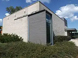 The first library in Grimsby was opened in 1871 in the home of Grimsby councillor Sam Mabey, housing a collection of 1,000 books.[27] Following a recommendation of the town council, the village struck a committee to approach the Andrew Carnegie Foundation to request new funds to build a new library. The foundation allocated $8,000 to build the new library building.[27] In 1975, the library was expanded to include a new building, which inaugurated a Grimsby Public Art Gallery in the basement of the library. A few years later, the Klosso Eloul sculpture 'Double is One' was installed on the grounds.[27] In 2004, a new building was constructed adjacent to the original structure to house both the library and art gallery. The original structure itself contains the Grimsby Archives.[27]