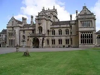 Architect James Thomson partly refaced and added to this house during 1832–40 for Neeld. In 1852–6 there was a partial demolition of the original manor with the new additions being designed again by Thomson, who was replaced by Henry Clutton in 1853. However, Thomson appears to have completed the house in 1854–6.[2] Pevsner wrote of the house: "It is really a monstrosity. It has Jacobean gables and a Jacobean central tower, but windows of a long, thin, Veneto-Byzantine variety, and odd oriels in unexpected places".[3]