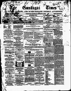 The Gundagai Times and Tumut, Adelong, and Murrumbidgee District Advertiser, often referred to as simply the Gundagai Times, was a newspaper published in Gundagai, New South Wales, Australia from 1868 to 1931. It was a direct successor of The Wynyard Times and Tumut and Adelong Advertiser and The Tumut and Adelong Times, published in Tumut, New South Wales, and was absorbed into The Gundagai Independent in 1931.[1]