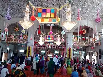 Main Hall of Gurudwara Nanak Piao Sahib decorated on the occasion of Guru Nanak Dev's Parkash Purab.