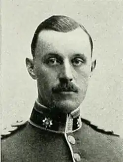 In about 1910, Knightley Stalker Dunsterville bought Gurneys House.[18] His grandson Hugh gave an account of this part of his life: he said that after Knightley bought the house his two sons who were in the Army came home on leave and stayed with their parents. It was customary for the family to go to Corsham Church and it was here that his son Graham Eadley Dunsterville met his future wife Eviline Goldney. In 1912 the couple were married and a year later had their first child. Graham went to join his regiment and Eviline came to Guyers House to live. Graham was killed soon after the war started in 1914 while trying to rescue a wounded soldier.[19]