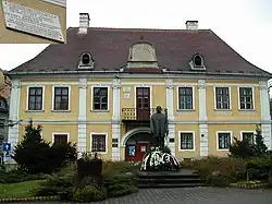 Bernády's statue is located in front of the Teleki house, in a place named after him. The statue's creator is Vince Bocskay, from Sovata.