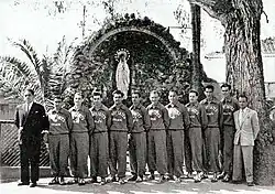 In solidarity with the French provinces annexed to Germany, two competitions were organized in Nancy in 1907[J 7] and 1911.[J 8] The second competition saw the participation of societies from Alsace, Belgium, Holland (province of the Netherlands), Ireland, Italy, and Canada. The FGSPF brought together 8,500 athletes in the Lorraine capital during this event. The 25 foreign delegations present established the International Union of Catholic Physical Education Works (UIOCEP), which later evolved into the International Catholic Federation of Physical and Sports Education (FICEP) in 1947. Paul Michaux served as vice president,[11] and Charles Simon as secretary-general. In December 1911, this union convened in Rome to establish its statutes with the encouragement of Pope Pius XI.[J 9]