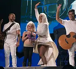 Gaga performed "Gypsy" as the encore to her 2014 show at South by Southwest (SXSW).[46] It was also the closing song of Gaga's 2014 ArtRave: The Artpop Ball tour. She sang it wearing long white wig and a dress with a long white train.[47] During some of the shows, Gaga brought audience members onstage to sing the song together.[48] Rob Sheffield of Rolling Stone criticised the choice of the song as the show's finale, saying that it felt anticlimactic. "After a one-song encore of 'Gypsy', the house lights came up... it was startling to realize the show was already over. [Gaga] didn't have superstar moves or hits saved up for the big finale—she decided not to do a big finale at all," he concluded.[49]