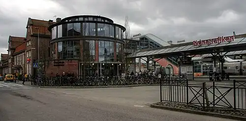 Hässleholm railway station is located in the city of Hässleholm, Sweden, along the Southern Main Line. Railway traffic started in 1860. The first proper station building was opened in 1863, although it during the years got too small. The station building in brick was built in 1921. City buses and regional buses stop nearby. Hässleholm is a railway town and the present midtown was a pure rural area before the railway construction.[5] The station is located around 100 metres (330 ft) from the traditional midpoint of the city.