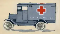 During the Spanish–American War, Saÿen was assigned to the army hospital at Ft McPherson, Georgia.[1] In a brief article[7] published at the end of that war, Saÿen described his military service, the status of medical x-rays in the Army at that time, and also proposed the construction of a mule-driven x-ray laboratory for field use. This proposal was never implemented. In 1917, as the United States drifted towards war once again, Saÿen updated his 1898 concept to an "Automobile X-Ray Unit". He wrote a detailed proposal[8] for five fully outfitted x-ray ambulances at an estimated cost of $2,000 apiece. They were to be sent to France in support of the volunteer force that was being organized under former president Theodore Roosevelt.[3] The vehicles were to be privately financed and Saÿen had recruited artists from the Philadelphia Sketch Club to staff the ambulance teams.[3] A drawing of the vehicle by Saÿen is attached (NMAH Accession file 267872). It is clear from his proposal that Saÿen had stayed up-to-date with x-ray technology because he recommended the use of the new Coolidge x-ray tube which had made the early tubes, including his own design, obsolete. Preferring to field an expeditionary force of regular army units, President Wilson declined to deploy Roosevelt's army and it was subsequently disbanded. Although Saÿen's plan for mobile military x-ray units was never realized, mobile x-ray units were designed and deployed by England, France and the United States.[9]