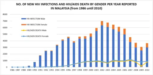 9. ^ a b c d "Snapshot of HIV & AIDS in Malaysia 2016" (PDF). Malaysia Aids Council. Retrieved 6 March 2019.