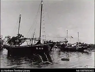 Mavie (later HMAS Mavie) and other luggers resting in harbour during the 1939 storm season