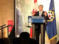 Canadian Prime Minister Stephen Harper appearing at a gala to celebrate the discovery of HMS Erebus, at the Royal Ontario Museum in Toronto