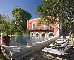Hacienda Santa Rosa de Lima is located in Maxcanú Municipality, Yucatán, Mexico, about 60 km from the city of Mérida. It is one of the properties that arose during the henequen boom, and produced sisal for many years. The property, which was largely completed in 1909, is now an exclusive luxury hotel.
