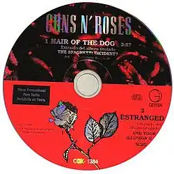 "Hair of the Dog" is a song by Scottish rock band Nazareth, released on their 1975 studio album, Hair of the Dog.[2] The song, alongside "Love Hurts", remains their most successful and popular. A tribute came in 1993 when Guns N' Roses covered Nazareth's "Hair of the Dog" on "The Spaghetti Incident?"; consolation after they turned down Axl Rose's request for the group to play at his wedding.[3] "Axl really made me more aware of Nazareth…" recalled GNR guitarist Slash, "because he can sing like that McCafferty guy, and really dug his voice. And so I remember listening to Nazareth a lot at one point."[4]