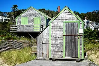 The Half Way House is a historic shelter for shipwrecked mariners on Andrew Harding Lane in Chatham, Massachusetts. This small shed-like structure was probably built in the late 19th century, and originally stood opposite the Old Harbor U.S. Life Saving Station. It may have been one of a number of such shelters erected by the Massachusetts Humane Society to provide protection for shipwrecked mariners, and is probably the last of its type. It was blown down in a 1944 hurricane, and moved to a location on private property off Andrew Harding Lane.[2]