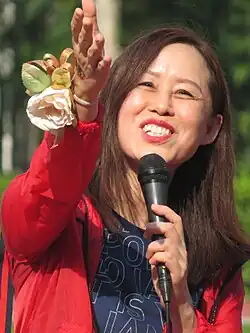 Poon was regarded as pro-Beijing after joining the newly formed establishment-leaning teacher's group Education Professional Alliance in 2021.[6] The Election Committee is also described as skewing the pro-Beijing camp.[7] Poon ran in the 2021 Election Committee Subsector elections as a candidate from the Alliance,[6][8] and was elected with the highest vote amongst other candidates in the Education subsector.[9] She subsequently became an electorate for electing the Hong Kong deputies to the National People's Congress of China.[10]