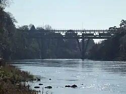 The road from Auckland reached Hamilton in 1867 and the railway in December 1877. That same month, the towns of Hamilton West and Hamilton East merged under a single borough council.[32] The first traffic bridge between Hamilton West and Hamilton East, known as the Union Bridge, opened in 1879. It was replaced by the Victoria Bridge in 1910.