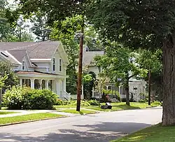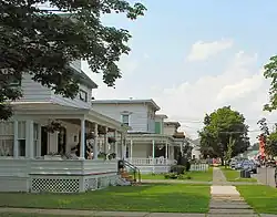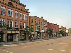 Much of the historic core of the village is part of the Hamilton Village Historic District, which became listed on the National Register of Historic Places in 1984.[27] Many of the buildings in today's village date from 1895, the year of "the great fire" which destroyed much of the village.[20][28] Many of those buildings were rebuilt in the same year, with "1895" on their facades.[29]