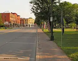 Early commerce in the village included groceries, blacksmiths, book sellers, furniture and carriage makers, feed stores, quarries and lumber mills.[20] The village's first newspaper, the Hamilton Recorder, was started in 1817.[20] The Chenango Canal (1834–1878) passed through the west side of the village alongside what is now the Barge Canal Cafe,[21][22] providing another connection between the Erie Canal, Midwest grain farms and East Coast markets. Agriculture in the surrounding area initially emphasized hops,[23] which gave way after the Civil War to dairy farming.[20]