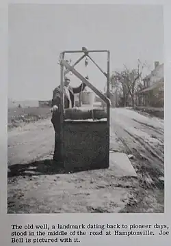 The old town well in Hamptonville. The Hampton Family House is in the background.
