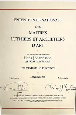 - ^ "Members Directory EILA". International Association of Violin and Bow Makers. 19 September 2019. Retrieved 21 May 2023.
