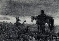 8. ^ В нарисованной им жизни, или — если хотите, шире — в той, которую она символизирует, разум и смысл отсутствуют, человек в ней — почти ничто; но не вся жизнь на свете такова. Если, например, взобраться на один из высоких холмов, о которых говорилось выше, то станет видно — что на этом свете, кроме молчаливой степи и вековых курганов, есть другая жизнь, которой нет дела до зарытого счастья и овечьих мыслей...