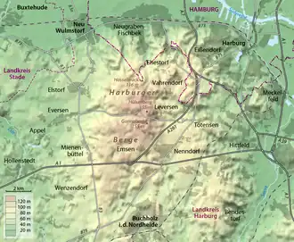 The Harburg Hills are end moraines that were formed in the Saalian glaciation and Weichselian Ice Age. They are a popular recreation area.[1]