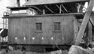 The railroad company’s charter allowed it to suspend service in the winter,[17] and the front page of the local freight tariff always included a notice that carriage was "subject to the right to suspend operations upon statutory notice" from December through March.[1]: 53–54 However, the railroad did not close for the winter throughout its operation[1]: 54 although there were some shorter closures late in its existence.[26]: 22 As a result, snow was an issue for the railroad.[18] The railroad's first snowplow was built by the railroad’s first engineer; it had to be removed and attached to the other end of the locomotive at each switchback.[6]: 25 Around 1900, this plow was replaced with a plow obtained from a timber railroad. This proved unsatisfactory, and a second-hand plow was bought from the St. Johnsbury & Lake Champlain when that railroad obtained a new one. This third plow served the H&W for the rest of its existence.[6]: 25 For lighter snowfalls, the railroad had a "flanger", designed by a conductor and built in Lyndonville. It was built on a single long truck and was quite effective.[1]