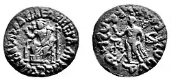 Azes coin from Peshawar, with Demeter/ Hariti with children and holding a cornucopia (Obv.) and Hermes (Rev.), 1st century BCE