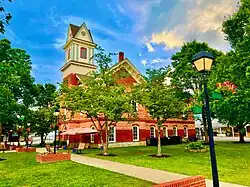 Hayesville High School was founded in 1870 as Hicksville Academy.[12] In the 1890s it was bought by Duke University and offered college courses.[11] After the first wood-frame county courthouse in Hayesville was destroyed by arson in 1870, the brick courthouse currently standing on the town square was constructed in 1888. It is listed on the National Register of Historic Places. In mid-2007, courthouse operations moved to a new justice center built 1 mile (1.6 km) west of downtown.[8]