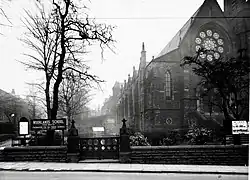 Headingley Hill Congregational Church is recorded in the National Heritage List for England as a Grade II listed building, having been designated on 19 December 1975.[8] Grade II is the lowest of the three grades of listing, and is applied to "buildings that are nationally important and of special interest".[9] The boundary walls, railings and gates were given a separate listing on 11 September 1996, also at Grade II.[10]