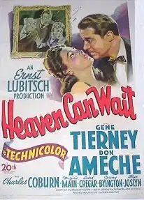 Heaven Can Wait is a 1943 Technicolor American supernatural comedy film produced and directed by Ernst Lubitsch. The screenplay was by Samson Raphaelson based on the play Birthday by Ladislaus Bus-Fekete. The music score was by Alfred Newman and the cinematography by Edward Cronjager.