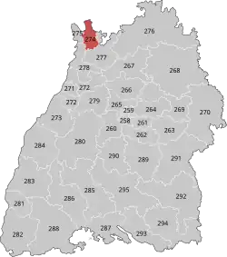 The constituency was first represented by Eduard Wahl of the Christian Democratic Union (CDU) from 1949 to 1969. It was won by Alex Möller of the Social Democratic Party (SPD) in 1969, who served until 1976. Karl Weber of the CDU was elected in 1976, and served one term. Hartmut Soell regained it for the SPD in 1980. Udo Ehrbar of the CDU was representative from 1983 to 1994. Karl A. Lamers of the CDU was elected in 1994 and served one term. Lothar Binding of the SPD was elected in 1998 and re-elected in 2002. Former member Lamers regained the constituency in 2005 and served as representative until 2021. Franziska Brantner won it for the Greens in 2021. The seat has been vacant since the 2025 election.