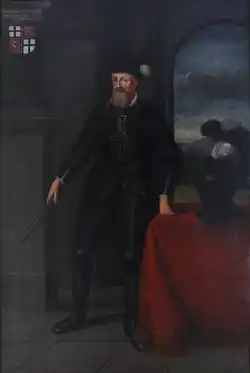 Unlike his predecessor, he was much more lenient towards Protestants and less supportive of the counter-reformation, which deteriorated relations between him Maximilian II. Relations only worsened with Maximilian's successor, Rudolf II, who in 1585, forced Heinrich into being a coadjutor, with him and Rudolf both sharing the title of Grandmaster. Rudolf's brother and Maximilian II's son, Maximilian III, would attempt to wrestle control of the order away from Heinrich.[2] Maximilian III's efforts were largely irresistible. After Maximilian took the oath on October 20, 1585, Heinrich was forced to surrender the Mergentheim Palace, the residence of the Teutonic Grandmaster since 1527.[3] The following year in 1586, Heinrich was forced to surrender the Teutonic coat of arms, regalia, and the titles of Hochmeister and Deutschmeister.[4] On February 20, he was forced to give up the administration of the Imperial Abbey of Fulda to Maximilian. Heinrich attempted to retake control of the order, however, the governor of Mergentheim halted his efforts in 1587.[5]