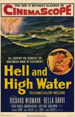Hell and High Water is a 1954 American Technicolor Cold War drama film from 20th Century Fox, directed by Samuel Fuller and starring Richard Widmark, Bella Darvi, and Victor Francen. The film was made to showcase CinemaScope in the confined sets of a submarine, and is not related to the 1933 film by the same name.
