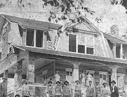 Elwin Hemingway pictured with craftsmen during Hemingway House construction.
