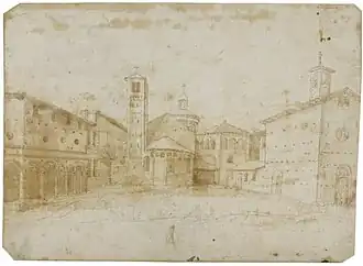 Some of the Italian views, made in Rome and Milan, can be dated between 1565 and 1568. It is therefore likely that the views of France date from shortly before or shortly after these years and were made during Gijsmans' outward journey to, or his return from, Italy.[4]