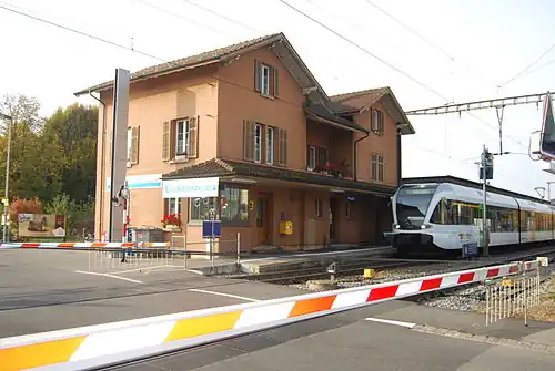The railway station is served by Zurich S-Bahn lines S12 and S33, which operate hourly (combined half-hourly service in each direction).[3][1][4] The S24 service does not call at the station.