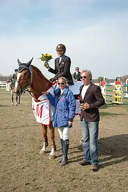 Malin Baryard and Ragnar Bengtsson hand over the prize to the winner of Henriksdal Spring Tour's Grand Prix 2009, Norwegian Cecilie Hatteland.