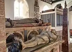 ![]() Tomb effigy at Titchfield of Henry Wriothesley, 2nd Earl of Southampton, with that of his mother above | |