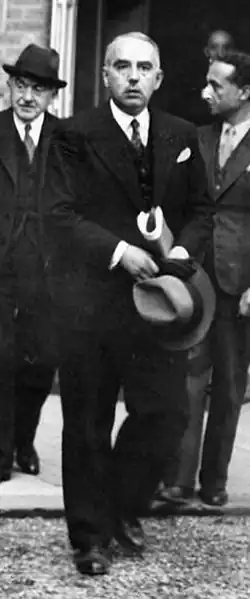 He was appointed again as Paul Reynaud's Chief of Staff when the latter became Minister of Justice in 1938.[1] In 1939, he was appointed as a financial attaché at the French embassy in Madrid, when Philippe Pétain was the French Ambassador to Spain.[2] In 1939, as France joined World War II, he served briefly in Franche-Comté and Alsace.[1] By October 1939, while Raoul Dautry was Minister of Armament, he was sent back to Spain and Portugal to negotiate the purchase of pyrite and mercury for French ordnance, but he was unsuccessful.[1]