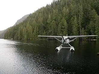 A floatplane parked at the southern end of Hesquiat Lake. The park itself is located 2.5 km further north.