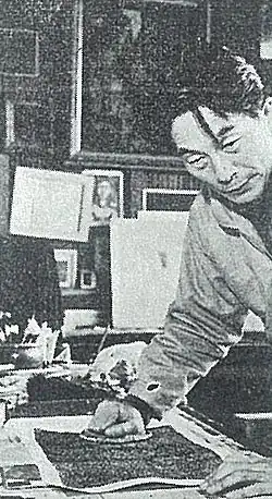 Hideo Hagiwara (萩原 英雄, Hagiwara Hideo; 1913 – November 4, 2007) was a Japanese artist who worked mainly with woodblock prints. He was born in Kōfu, Yamanashi. Between 1921 and 1929 he lived in Korea and Manchuria. He studied at the Tokyo School of Fine Arts, where he graduated at the Oil Painting Section in 1938. While still there he attended Un'ichi Hiratsuka's extracurricular woodblock printing course, and in the same year he became quality controller at the Takamizawa Woodblock Print Company. He was conscripted into the army in 1943. In 1945 he had lost his house, his atelier and nearly all his early works. Around 1950 he had sufficiently recovered to start painting again. At the same time he started making Sōsaku Hanga, both figurative and abstract prints. He was known as a constant innovator and he was generally considered one of the best post-World War II Sōsaku Hanga artists.