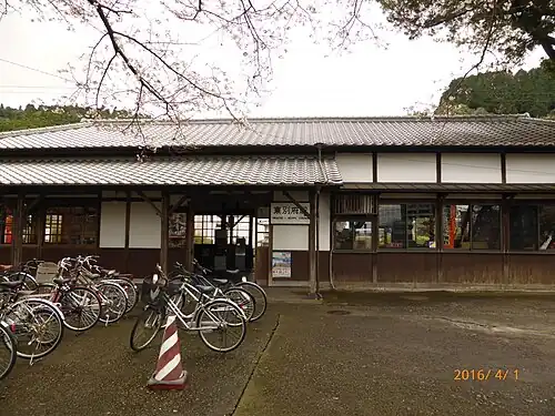 9. ^ "東別府駅本屋" [Higashi-Beppu Station wooden station building] (PDF). Beppu City official website. Retrieved 1 May 2018.