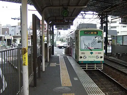 This stop is served by the Tokyo Sakura Tram operated by Tokyo Metropolitan Bureau of Transportation (Toei).